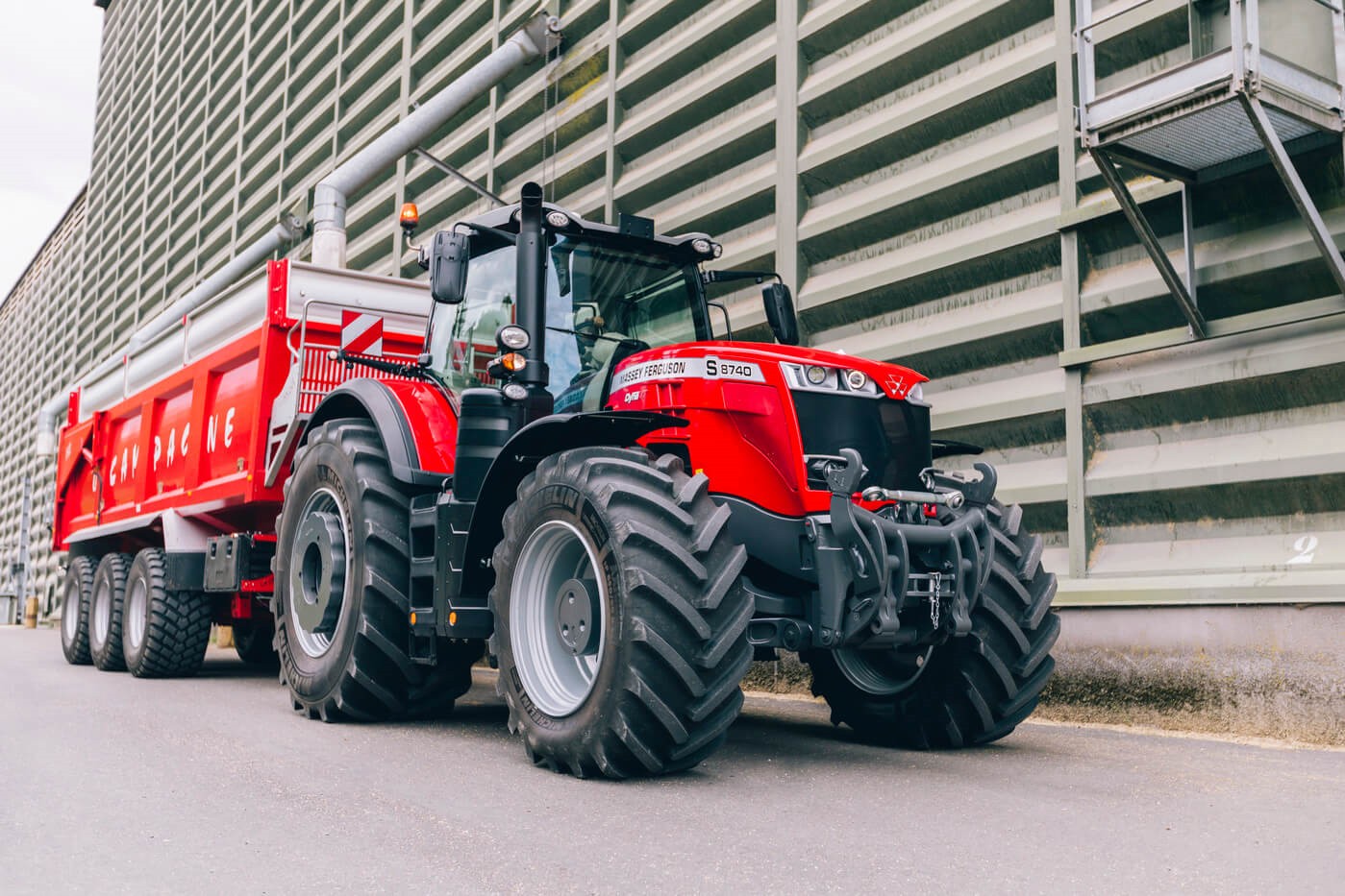Yere daha iyi bir güç aktarımı sağlanması için 900 mm genişliğe ve 2,15 metre çapa kadar arka lastik seçeneğine sahip ikiz tekerlekler dahil olmak üzere yeni lastik donanımı, MF 8700 S modellerinin yüksek çekiş gücü gerektiren işlerde bile çok düşük lastik basınçlarında çalışmasını sağlar.